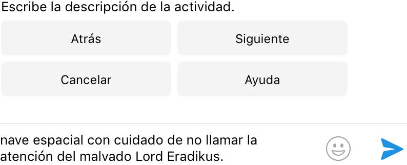 Escribe la descripción de la actividad y pulsa en la flecha azul para enviarlo al bot.