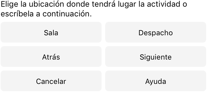 Elige la ubicación donde tendrá lugar la actividad o escríbela a continuación, el campo no es obligatorio.