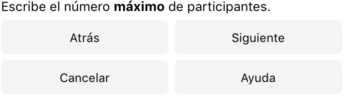 Escribe el número máximo de participantes, el campo no es obligatorio.