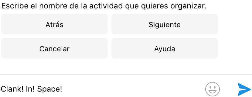 Escribe el nombre de la actividad que quieres organizar y pulsa en la flecha azul para enviarlo al bot.