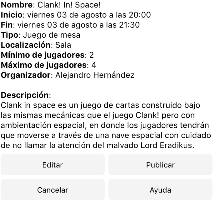 - Pulsando en Gestionar ver por privado las acciones que puedes hacer con la actividad si eres el organizador.