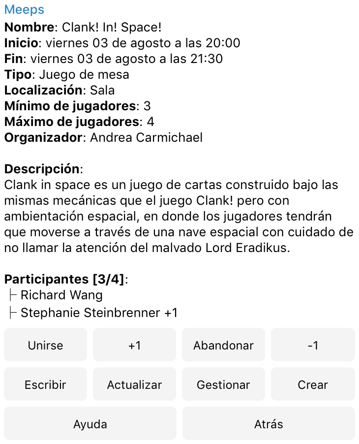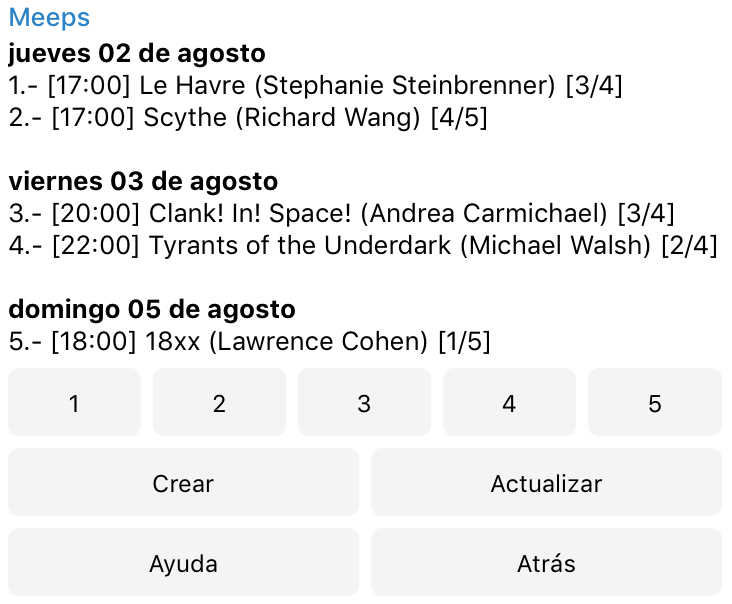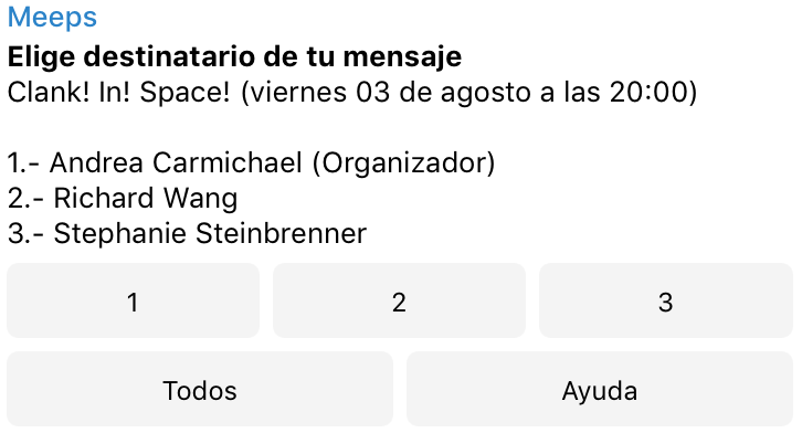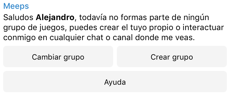 Tienes que estar suscrito al canal de Telegram del grupo e interactuar con Meeps pulsando cualquier botón. Habla con el organizador de tu grupo de juegos para entrar en el canal.